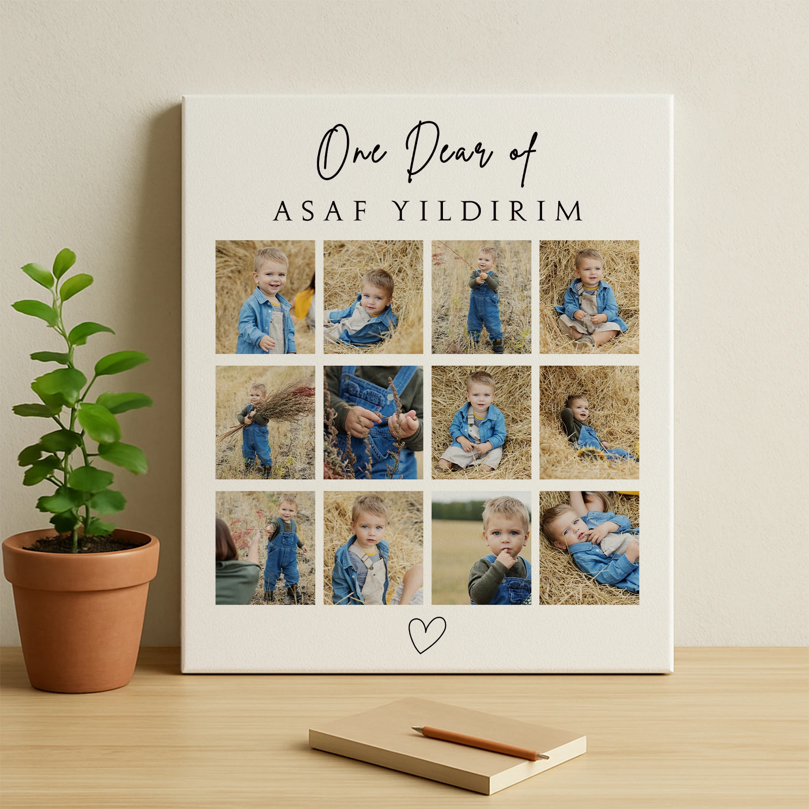 Bebeğinizin en özel anılarını bir araya getiren bu 12 karelik hatıra kanvas tablo, 40x50 cm ölçüsüyle ev dekorasyonunuza duygusal bir dokunuş katıyor. İlk yaş, yeni doğan dönemi veya özel çekimlerden seçilen fotoğraflarla hazırlanan bu kişiye özel tablo, hem şık bir hatıra hem de kalıcı bir hediye alternatifi sunar.