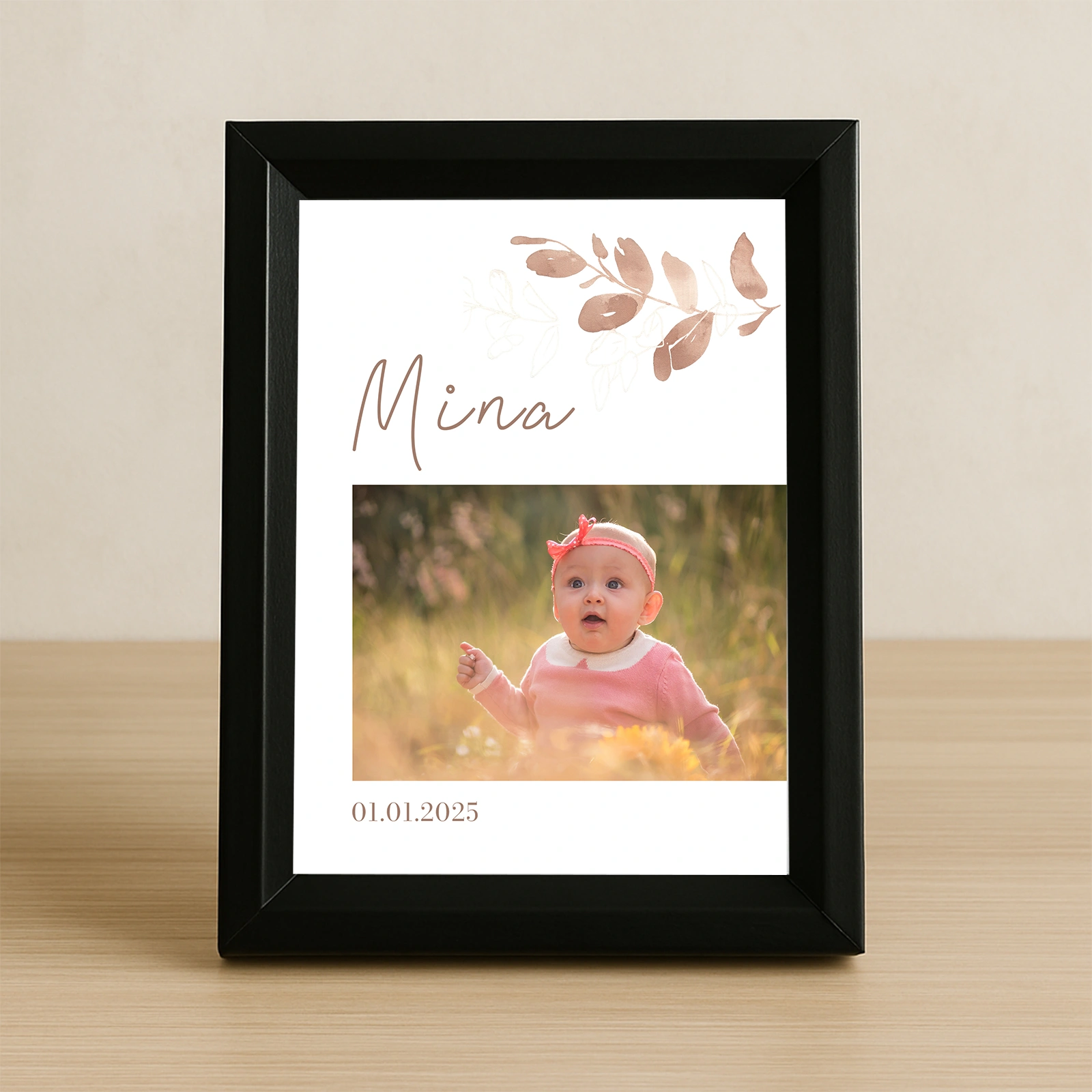 Sevgiyle hazırlanan bu tek fotoğraflı kız bebek çerçevesi, 15x21 cm ölçüsünde olup bebeğinizin ismi ve doğum tarihiyle kişiselleştirilebilir. Zarif tasarımı sayesinde kız bebek odalarında şık bir dekor olur. Ayrıca doğum günü, baby shower, ilk yaş günü ve özel anlar için unutulmaz ve kişisel bir hediye seçeneğidir.