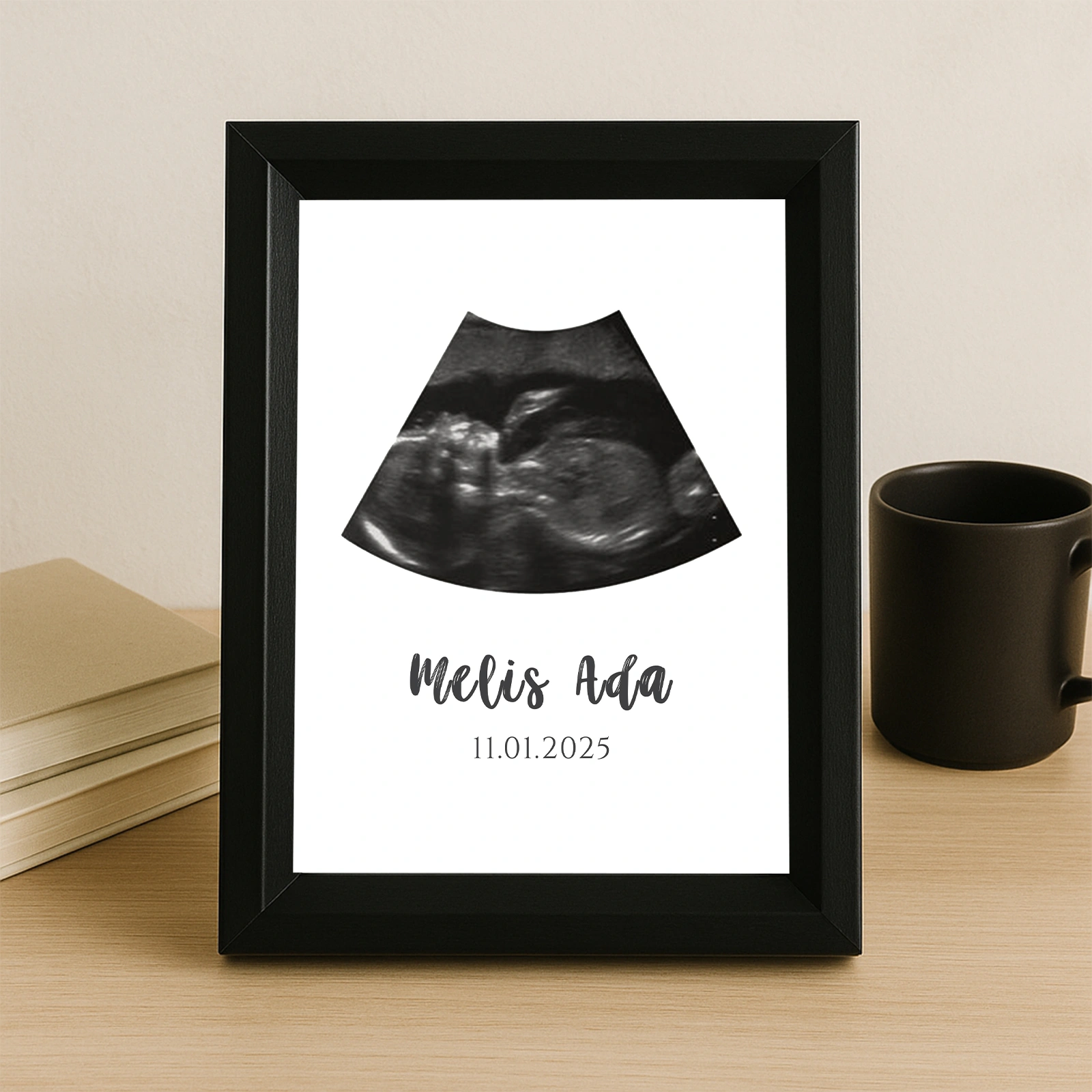 Bebeğinizin ilk mucizevi görüntüsünü ölümsüzleştirebileceğiniz bu tek fotoğraflı ultrason çerçevesi, 15x21 cm ölçülerindedir. Üzerine isim ve tarih eklenerek tamamen kişiselleştirilebilir. Anne ve baba adayları için eşsiz bir hatıra olmasının yanı sıra, baby shower, hamilelik kutlaması veya özel günlerde sevdiklerinize anlamlı bir hediye alternatifi sunar. Minimal tasarımı sayesinde her dekorasyona uyum sağlar ve bebeğinizin ilk anısını yıllarca saklar.