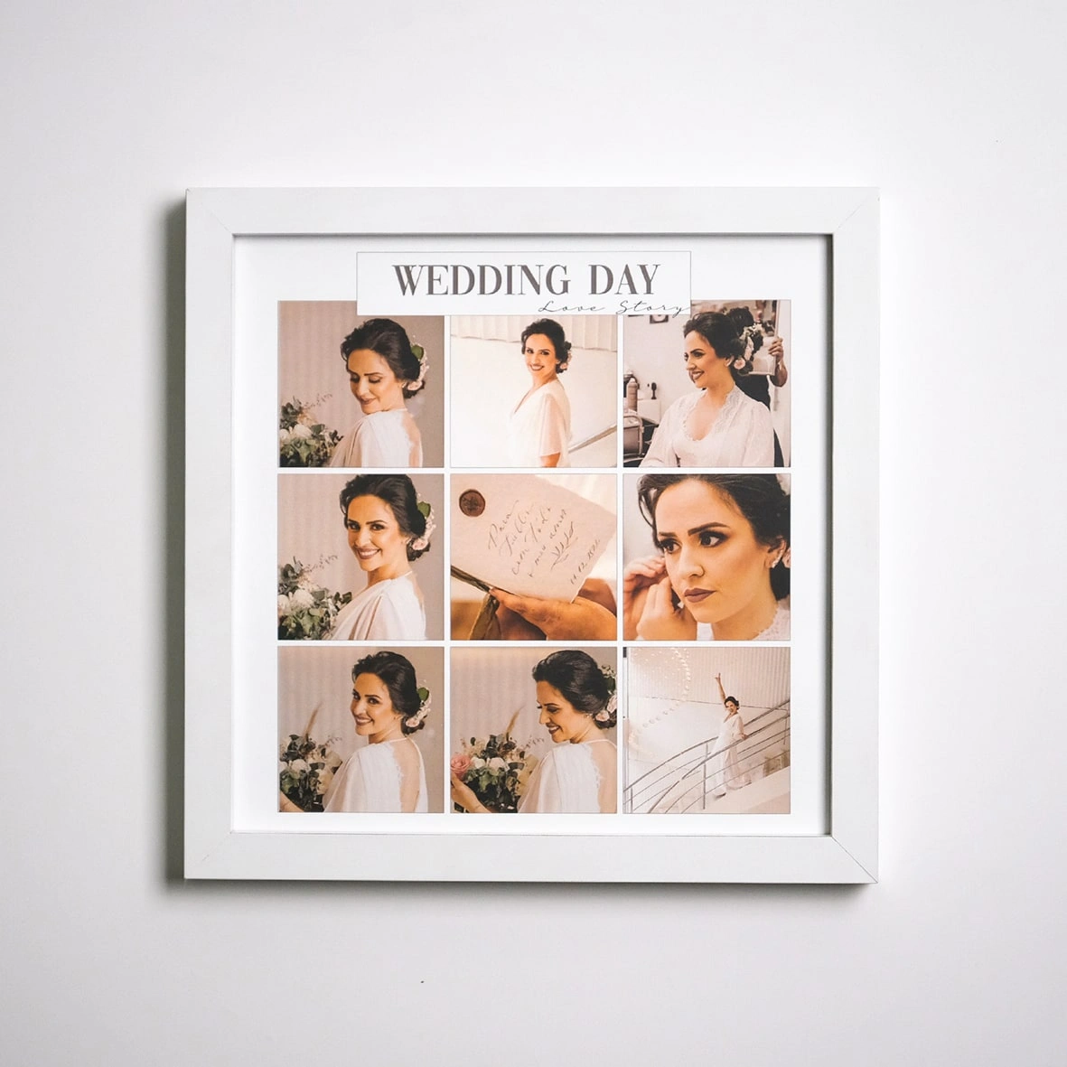 *Bu 25x25 9 fotoğraflı düğün günü çerçevesi, en özel gününüzü anılarınızla dolu bir şekilde sergilemenin harika bir yolunu sunar. Düğün gününüzdeki en güzel anları, sevdiklerinizle paylaştığınız anları ve kutlamaları bir araya getirerek ölümsüzleştirin.