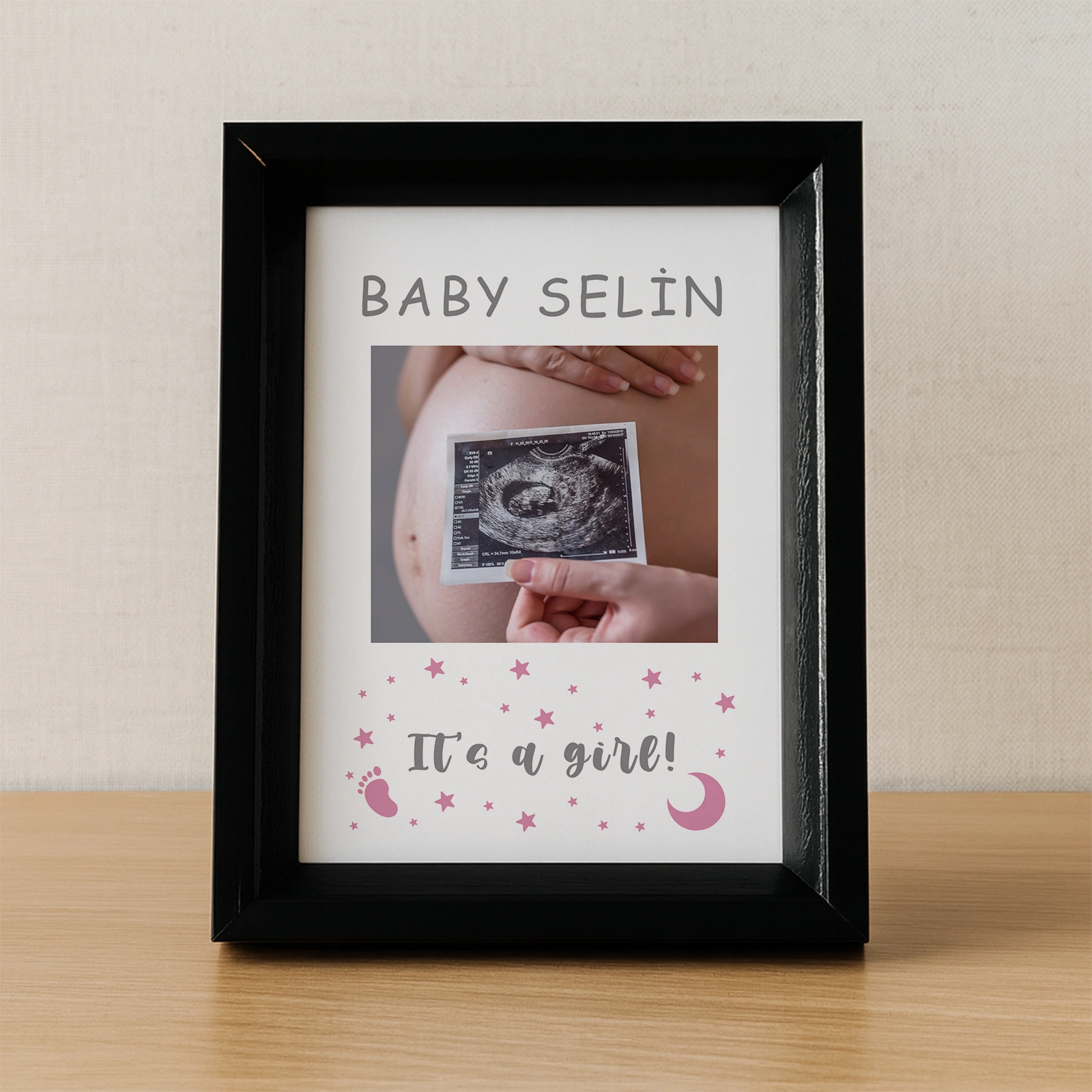 🌙✨ 15x21 cm ölçülerindeki bu tek fotoğraflı kız bebek çerçevesi, üzerine isim eklenerek tamamen kişisel bir hatıraya dönüşür. “It’s a girl!” tasarımıyla cinsiyet açıklama partilerinde, baby shower organizasyonlarında ve özel günlerde dekoratif bir detay olarak kullanılabilir. Ayrıca anne-baba adaylarına anlamlı ve unutulmaz bir hediye seçeneği sunar.